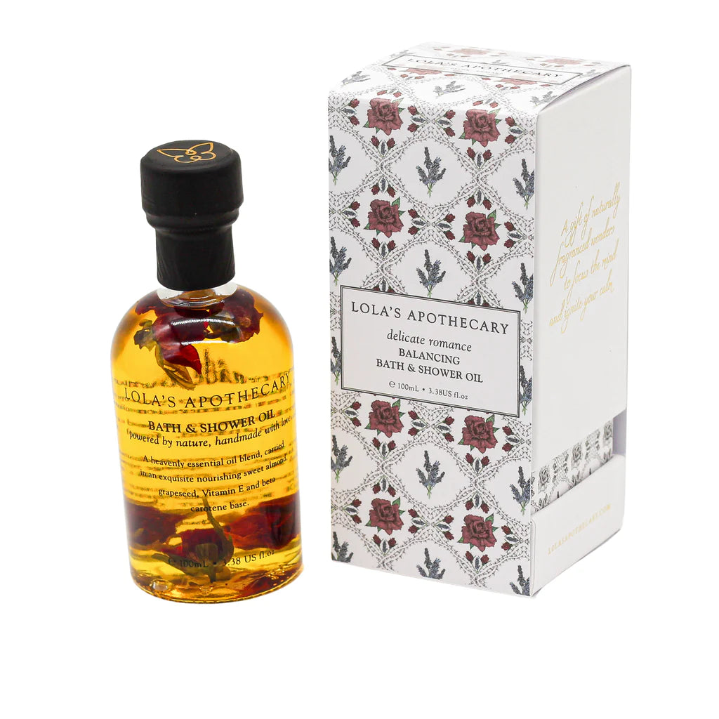 The Bath & Shower Oils are extraordinarily concentrated with plant essences - so do not use neat on your skin! The pure essential oils are carried in a nourishing base of sweet almond oil, grapeseed oil, beta-carotene and vitamin E. You only need a few drops for a full bath; it is also fabulous as a shower oil.